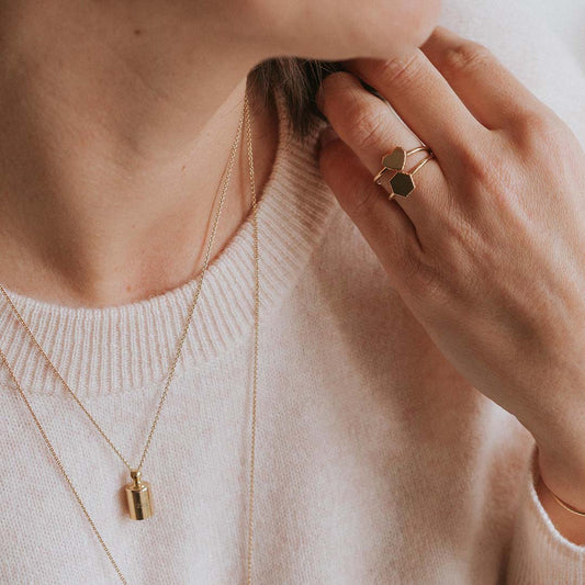 • Coffret bagues Simone canelé - Maman & Enfant plaqué or jaune - Mon Petit Poids