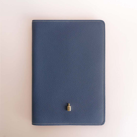 Protège carnet personnalisé navy doré or jaune